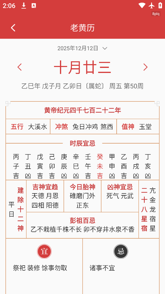 2、黄历宜忌:在黄历模块中,用户可以查看每日的宜忌事项,如结婚、搬家、出行等,为日常生活提供参考。