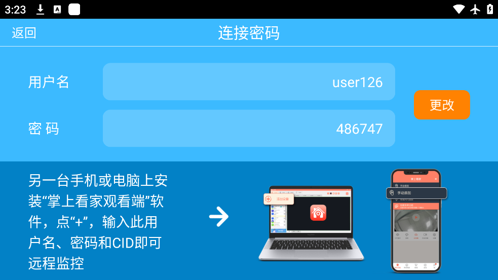 4、准备另一台智能设备,手机、平板或者电脑,安装“掌上看家”APP扫码添加采集端OTG版,成功连接观看。