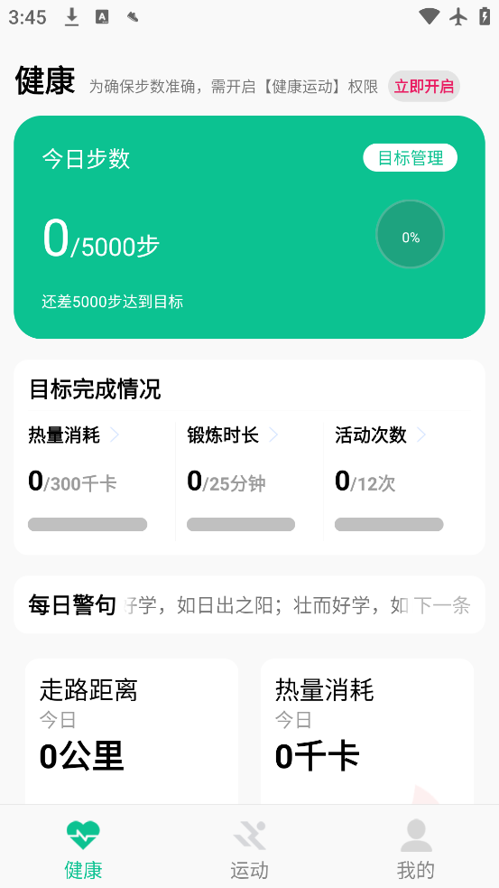 3、实时掌握运动数据,进入首页的时候即可直观了解自己的运动里程、时长与能量消耗数据。