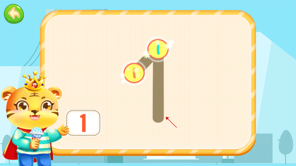 1、跟着卡通一起认识和学写简单的阿拉伯数字0-9。