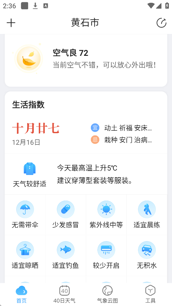 3、生活服务:涵盖钓鱼指数、潮汐预报、滑雪适宜度等15项户外场景指标。