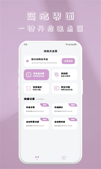 2、权限设置:进入手机“设置”→“应用管理”→“快指点击器”,授予所需权限(如悬浮窗、无障碍服务)。