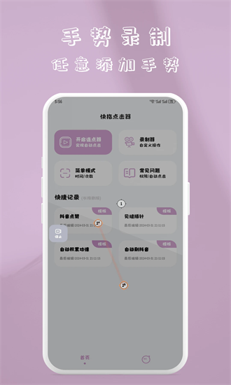 1、自动点击/连点:支持一键设置手机进行自动点击、连点操作,同时支持手势操作设置。