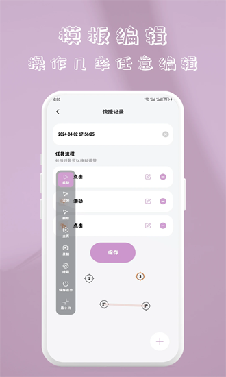 2、模板编辑:操作几率任意编辑,简洁界面,一键开启连点器。