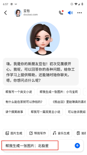 3、我们以文字的内容输入想要她做的事情,在上方还有对话的模板可以使用哦。