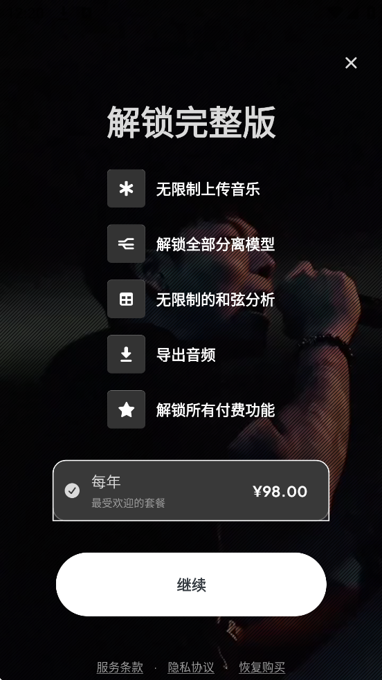 1、AI音轨分离:支持人声、鼓、贝斯、钢琴、吉他等音轨的独立分离与音量调节。