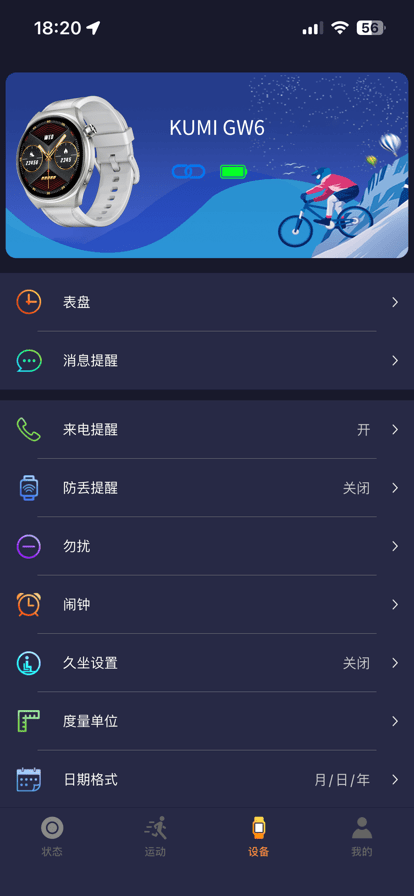 快速绑定:按屏幕指引选择KUMI智能手表型号,完成配对。连接成功后,应用自动同步设备数据。