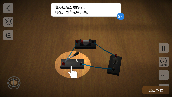 2、以电学实验为例, 点击进去后,我们就来到了小灯泡电路的模拟实验。不会用也不用担心,应用会提供新手操作教程,可以跟着视频过一遍。