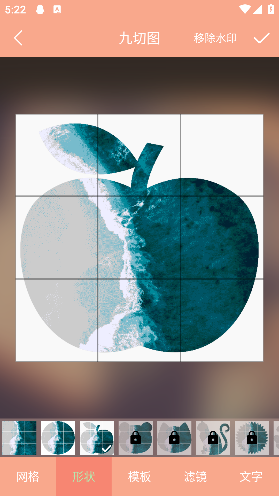 你可以将一张照片切成3x3, 2x2, 1x1, 1x3, 2x3的网格图,并添加上特效、装饰边框或者裁剪成苹果、桃心、动物、花朵等形状;
