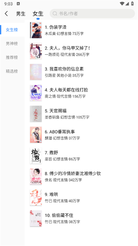 3、平台分为男频和女频两种板块,适合所有用户下载和阅读。