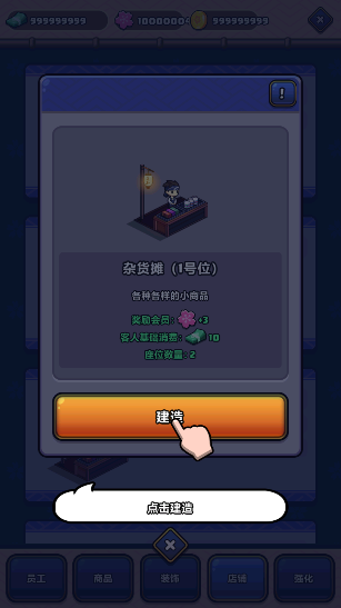 2、接下来搭建一个杂货铺,这可是夜市的赚钱利器!