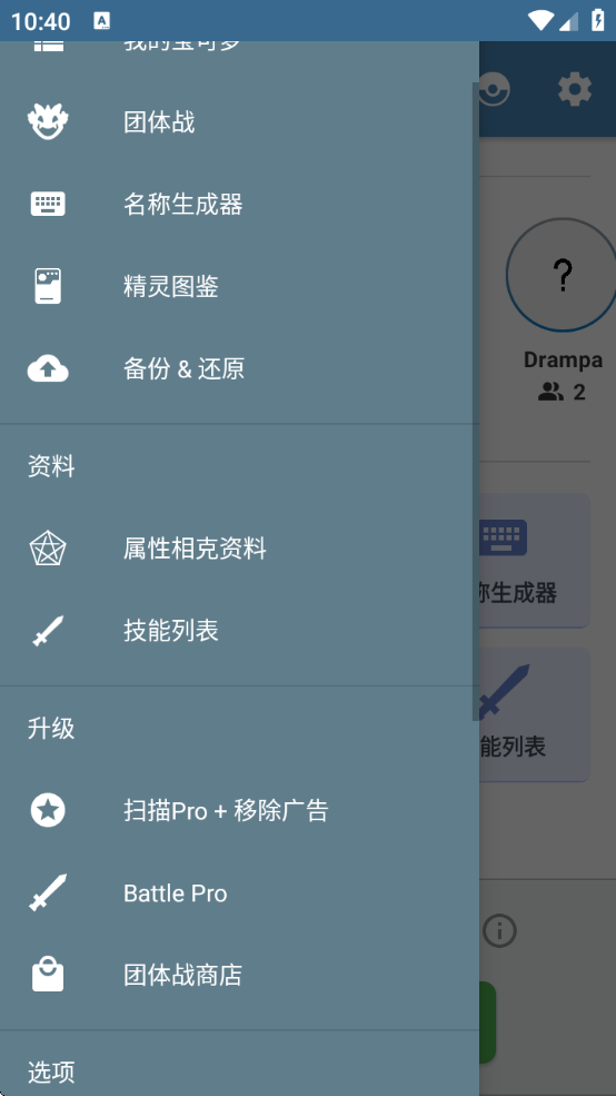 4、软件的所有的功能列表都在这里,包括团体站、属性相克资料都可以在这里找到