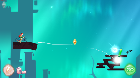 总体来说,游戏自由度颇高,为拓展玩家的思维,通过绘画出合适的路线,驱动单车收集沿途的梦想碎片,奔向远方的世界入口,游戏前期会显得比较的简单,但随着时间的推移和关卡的进行会慢慢变难。在游戏中抵达终点并不是唯一的目的,需要合理躲避以及利用关卡障碍,收集全部星星才能完美过关。