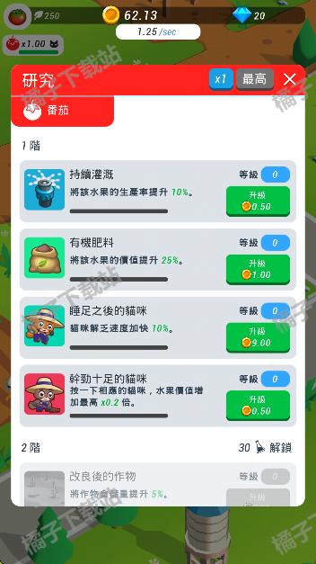 超级闲置猫游戏下载安卓版是一款非常好玩的模拟经营手游,猫咪需要好好经营这个巨大的农场,各种种植水果和农作物,获得更多的收益,扩大农庄规模,一起努力工作,本站提供超级闲置猫游戏下载安卓版的资源,喜欢的小伙伴快来下载吧!