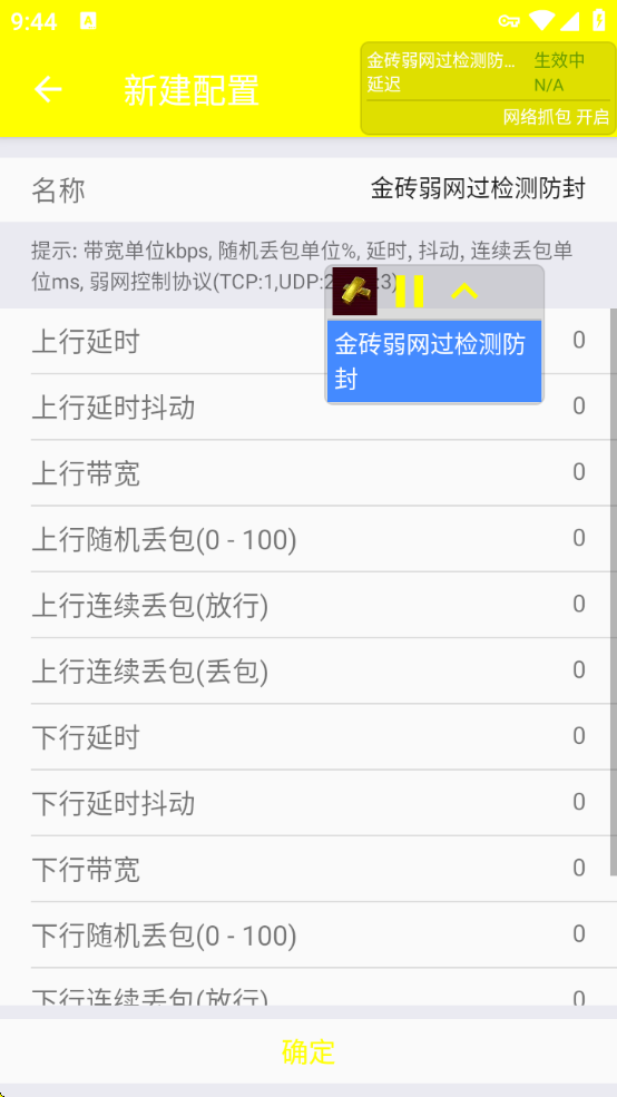 设置网络参数:打开应用后,在对应界面中输入需要模拟的网络参数,例如上行带宽、随机丢包率等。