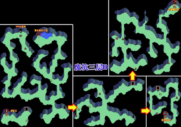 (4)、打倒BOSS后,进入废坑矿三层的地下矿区,这里地形很复杂,但宝物很多。可找到[セルセタのはな塞尔西达之花],[てつこうせき铁矿石],[じやぁくな すず邪恶之铃],[ライトのまほう光源魔法杖]。