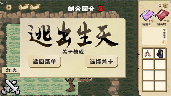 3、正式开始后角色左上角的数字代表本回合可以行动的次数,游戏的右上角可以抽取道具和英雄,下方的方块是物品栏。
