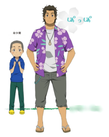 小时候他个头矮小,是大家的弟弟,如今已长大成人,在世界各地流浪。他把“超平和Busters”的秘密基地当作住所。他相信仁太的话,为达成面码的愿望积极行动。