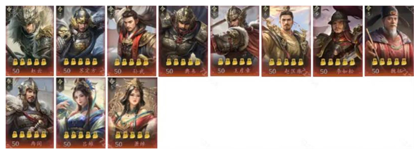 2、T1:赵云、苏定方、孙武、典韦、王彦章、赵匡胤、李如松、魏征、冉闵、吕雉、萧绰。