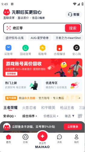手游猫官方正版是一款特别实用的手机交易平台,里面的账号种类十分丰富,你可以根据自己的需求来购买账号,每天都会有各种优惠活动,账号信息都会非常详细的展示出来,快来加入行动吧。