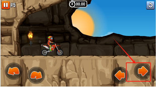 3、左边两个按钮分别是摩托车前后翘头的状态,保证摩托车不直接翻掉;