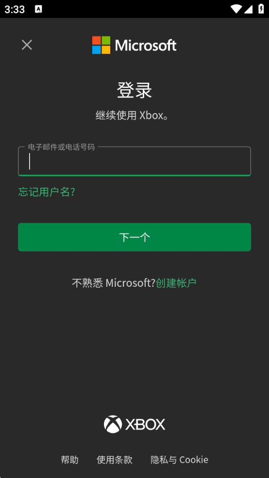 1、安装好xbox手机app后,需要注册或登陆xbox账号,可以和主机上登同一个