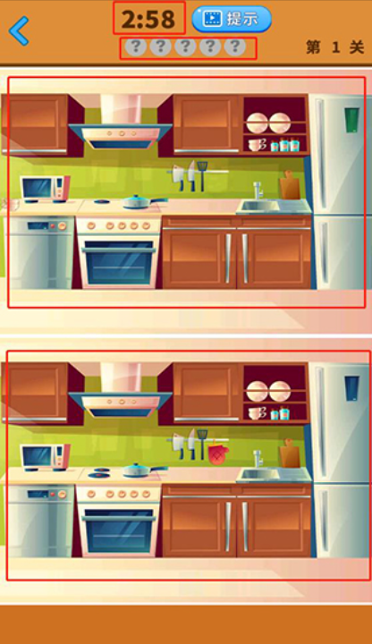 操作方法:在两副图片的差异区域进行选择。每副图片通常有5处不同点需要找到。