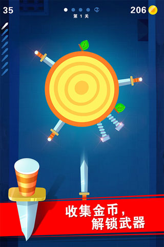 3、游戏的乐趣在于不断挑战,通过不同难度的最高关卡,并解锁所有的飞刀造型