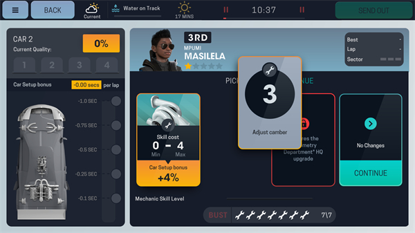 3、除了基本的车队管理任务之外,玩家还可以自己驾驶赛车,改装赛车的类型。