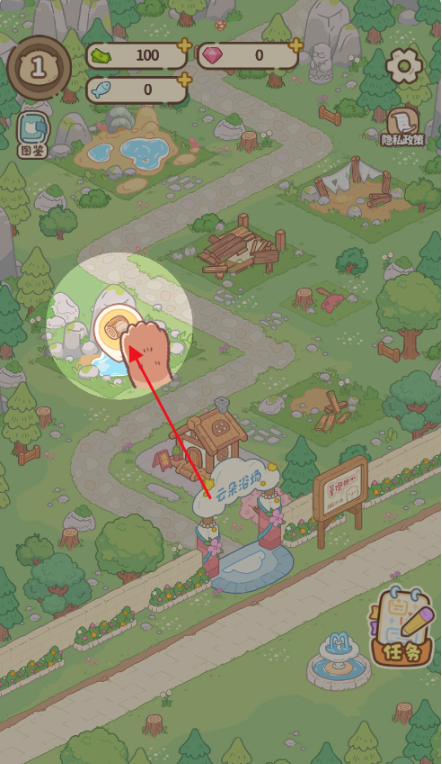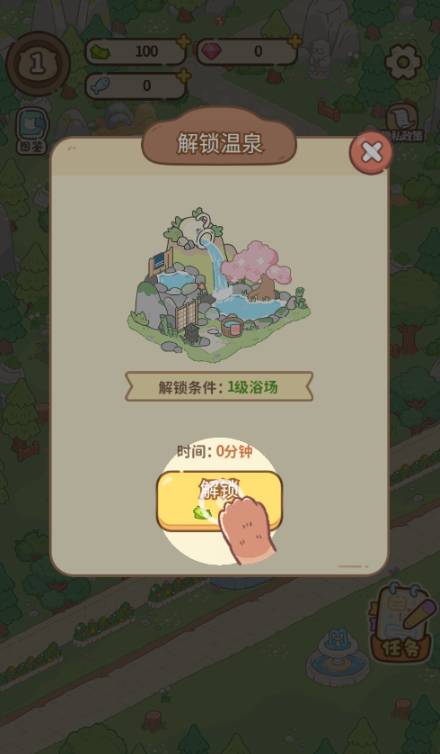 2、点他,解锁温泉。