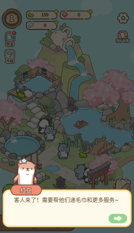 一款治愈系模拟经营手游。在游戏中玩家将化身水獭红豆,接手家乡老浴场开启改造之旅,通过升级设施、解锁装饰,将一座陈旧浴场打造成动物们的放松天堂,让疲惫的小动物们在此卸下疲惫!
