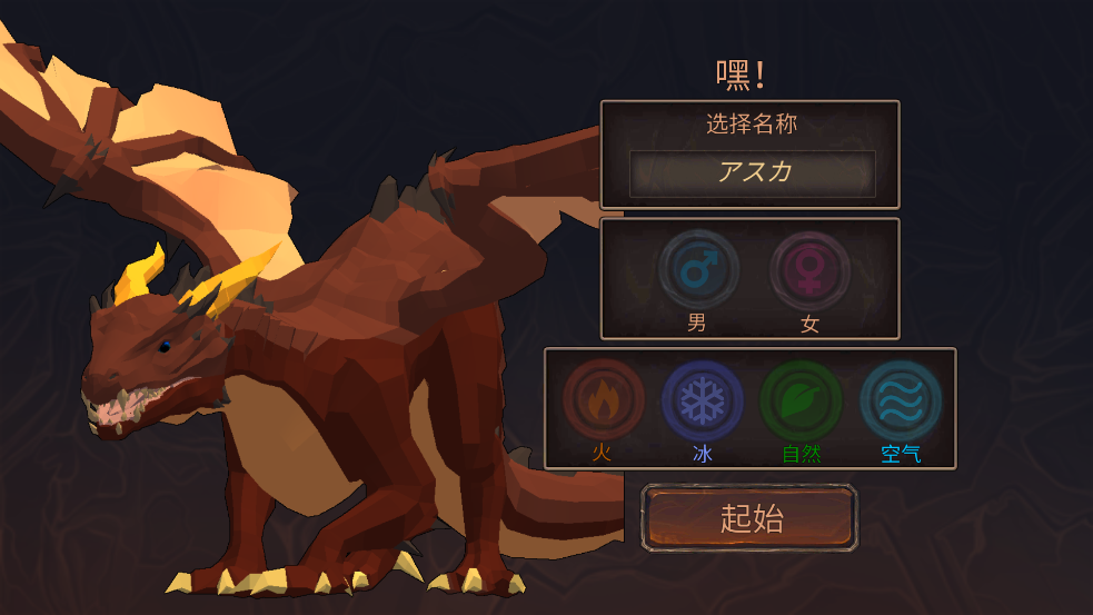 2、编辑昵称、性别以及你的龙的属性,火、冰、自然以及水属性,然后点击创建。