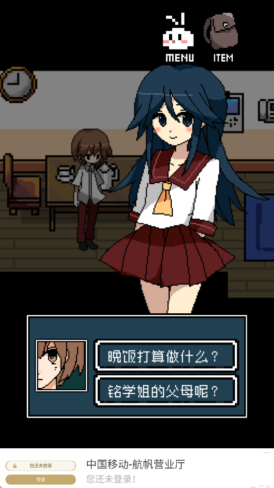 铭日记是一款像素风叙事游戏,玩家通过探索铭学姐的住宅收集日记碎片,逐步揭露她表面开朗乐观下的悲惨过往——长期遭受家暴与校园孤立,最终在绝望中弑亲并戴上人格面具。游戏以碎片化叙事展现角色心理转变,通过“雪丸”等追随者的视角,探讨爱与救赎的主题,结局分歧点设有自动存档机制,便于玩家体验多线剧情。流程虽短,但通过环境细节(如积灰的红茶杯、锁定的房间)暗示家庭矛盾,营造压抑氛围。
