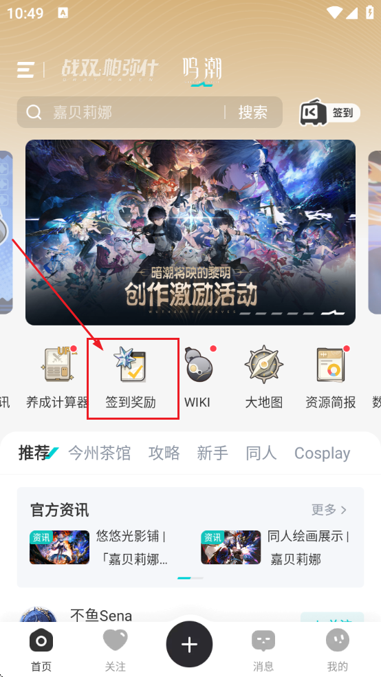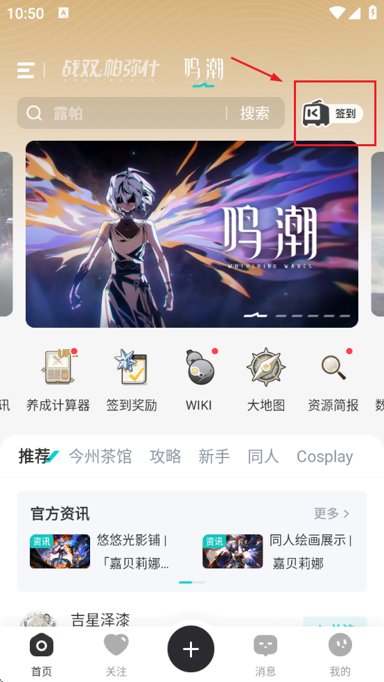 2、登录后,点击“首页”,选择要签到的游戏,库洛游戏现有《战双帕弥什》和《鸣潮》两款;