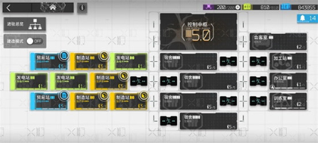 玩家可在罗德岛基建场景中建造制造站、加工站与发电站。制造站能够花费特定时间为代价生产技能概要、赤金、作战记录等道具。加工站则可以通过消耗龙门币对若干低等级素材进行加工,使之变为高等级素材。发电站则是为其他设施提供电力,发电站制约着其他设施的等级提升。玩家可以通过升级制造站与加工站来获取更高级素材的制造/加工配方并扩充站内进驻干员的数量上限;