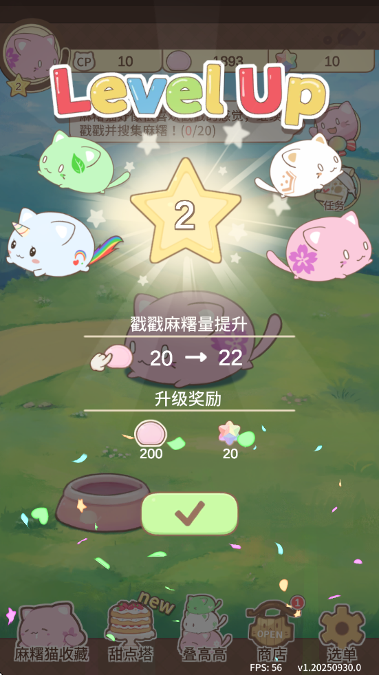 3、叠猫塔机制:收集的麻糬猫可叠放,数量越多叠得越高,趣味性增强。