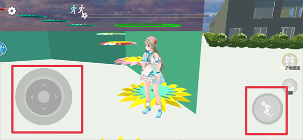 2、进入后,使用左边轮盘控制角色的移动,右边为跳跃。