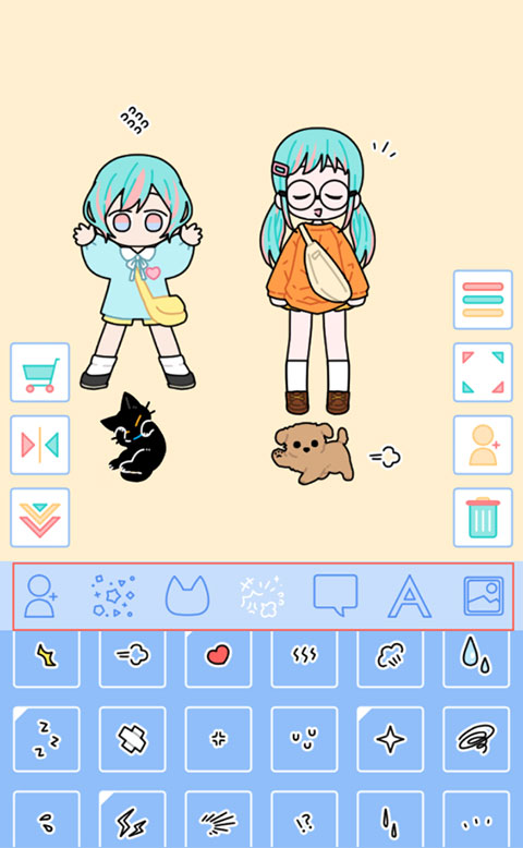 2、玩家还能够在角色的基础上去加入对话框、颜文字等趣味元素,搭配上自定义的背景图,设计出一个完美的壁纸。