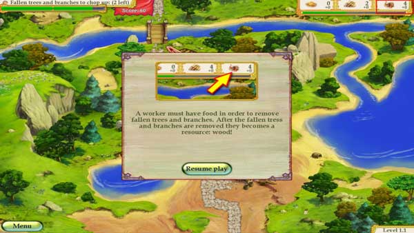 4、工人必须有食物才能移走倒下的树木和树枝,因此每次当玩家做完相应的任务时,需要回到房屋补充食物。并且当玩家将倒下的树砍断之后,分支被移除,它们就变成了资源,木头!