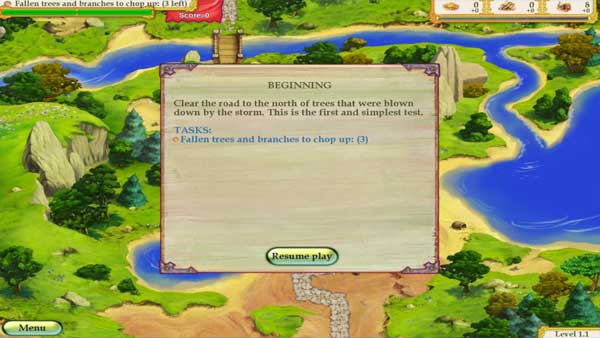 3、开始游戏时,页面上会提示你要成的任务目标。把向北道路上被风暴刮倒的树木清理掉。这是第一个也是最简单的测试。任务:落下的树木和树枝要砍断。