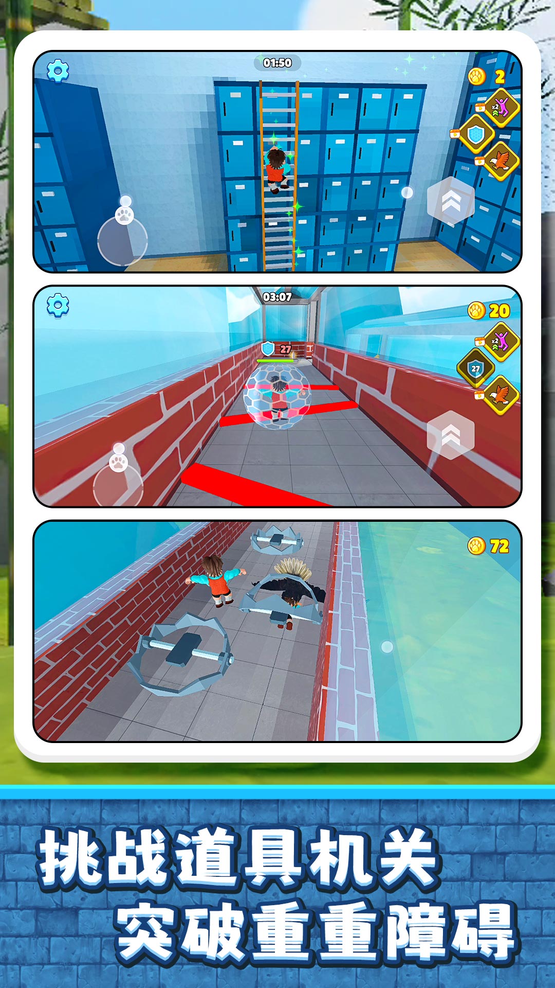 2、机关互动玩法:各类机关陷阱拥有独特的运作规律,从旋转风车到间歇激光,需要精准把握时机通过。