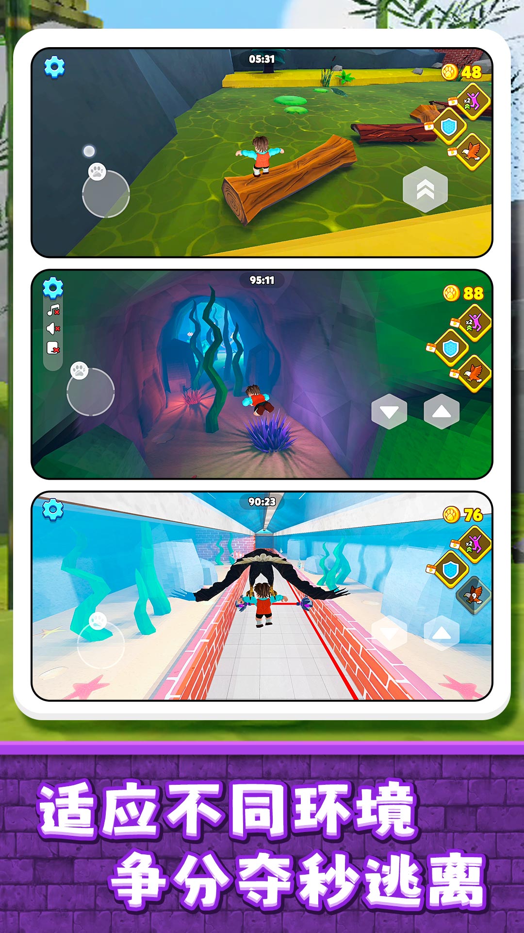 3、多线场景设计:每个主题区域都有多条逃生路线,玩家可根据当前状况自由选择,隐藏路径往往藏有稀有奖励。