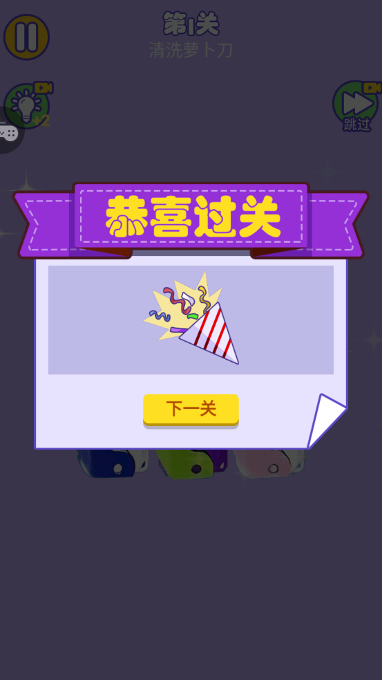 2、当你遇到觉得很难的关卡时,可以点击提示功能或跳过功能。