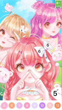 泡泡填色是一款轻松有趣的数字填色游戏,玩家通过点击数字对应颜色完成二次元主题画作,操作简单且模板丰富,适合休闲娱乐。