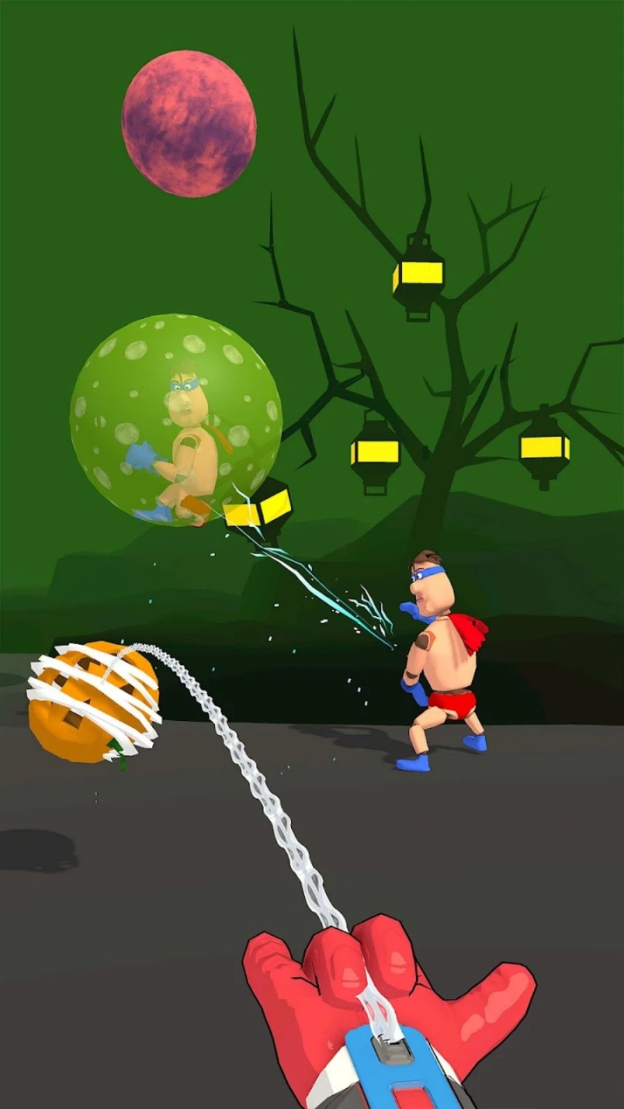 2、操控蛛丝投掷手,通过发射强力蛛丝捕捉目标,灵活运用蛛丝的弹性和力量。