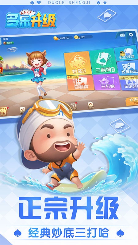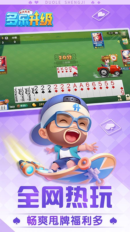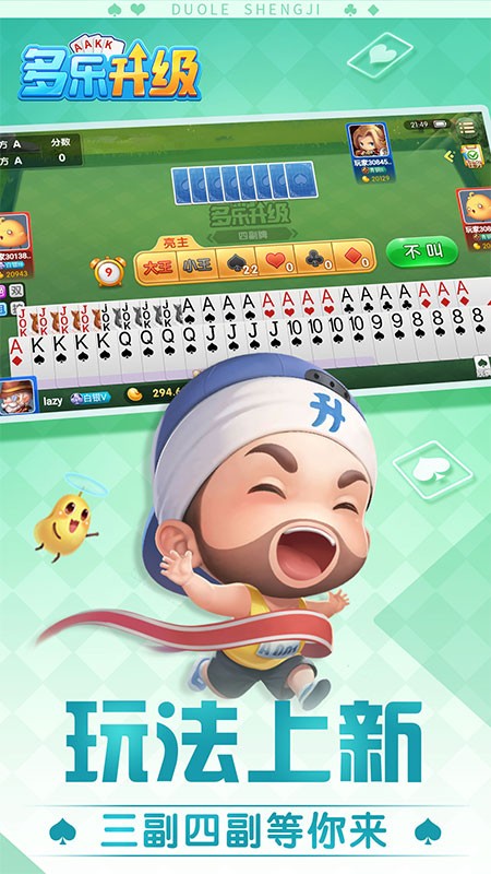 多乐够级是一款源自山东的6人纸牌游戏,采用4副牌进行3V3团队对抗,核心玩法包括“烧牌”“闷牌”等策略操作,目标是通过出牌策略让队友成为“头科”(第一名)。游戏支持单机AI和在线多人模式,提供方言配音、实时语音等社交功能,适合碎片化娱乐。