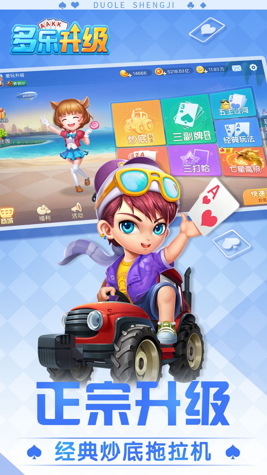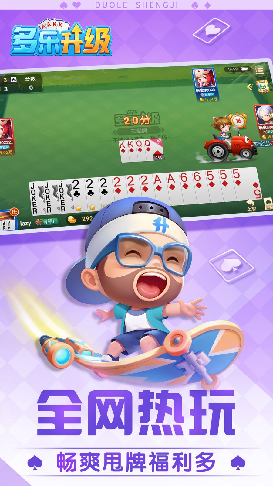 多乐升级是北京蓝色创想开发的棋牌手游,支持2-4人双升/拖拉机玩法,含经典、炒底等模式,适配多平台并提供智能选牌、牌局回放功能。
