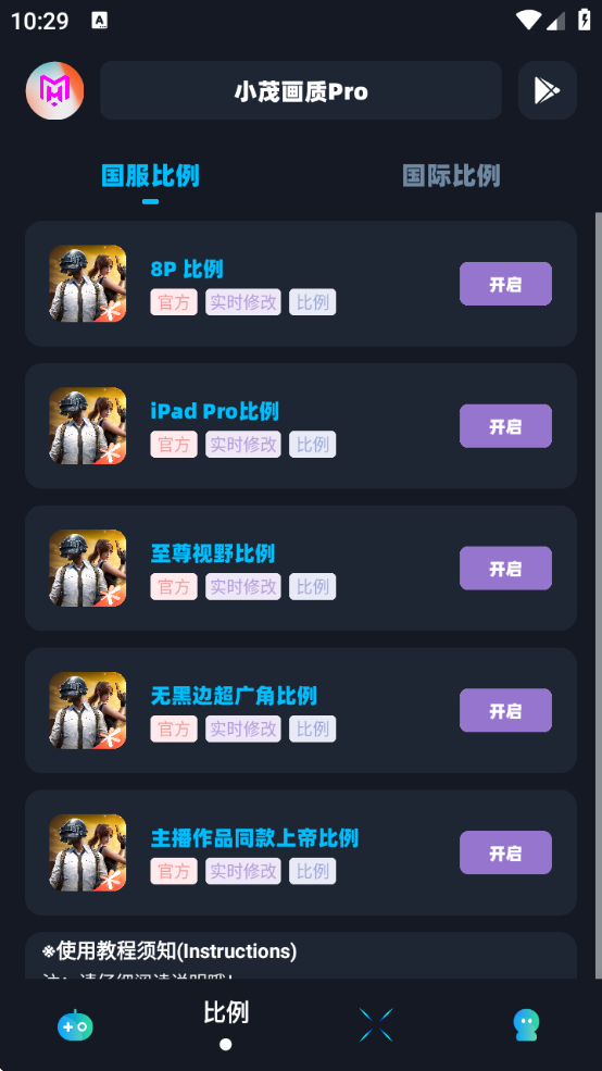 小茂画质Pro安卓版和平精英是款好用的游戏助手,各种功能非常的齐全,快来点击屏幕来进行使用,免费解锁不同的画质来让游戏更加的便捷,还在犹豫什么?快来加入我们吧!