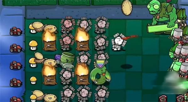 2、先种植一个火炬树桩,然后种植多个燃爆向日葵,后面可以种植阳光菇。