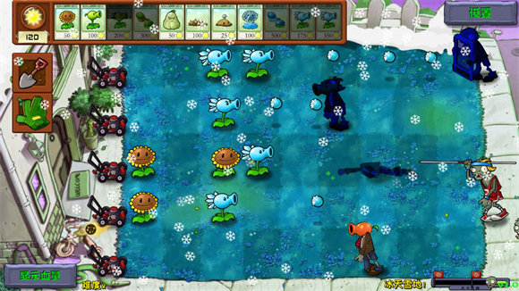 2、雪地:冰冻机制,当玩家在雪地地图里种下植物后会自动变成雪地系植物,雪地植物攻击敌人会降低其速度并且将其冰冻。